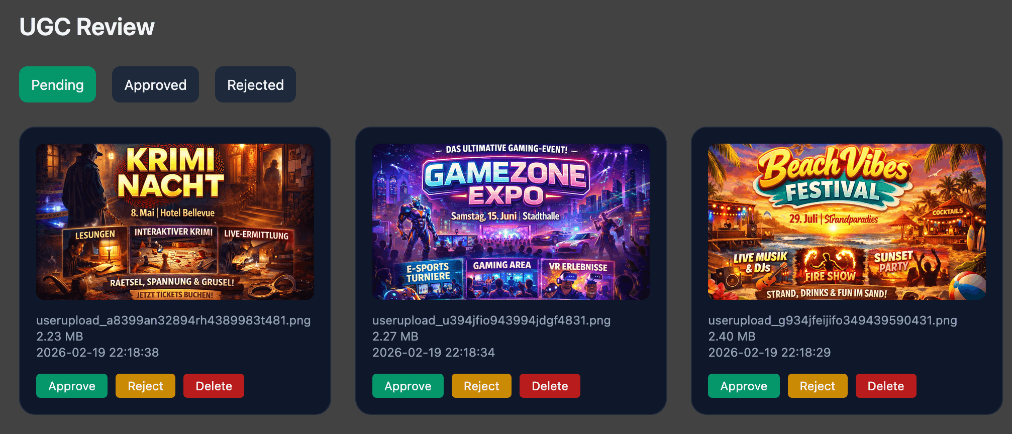 🆕 Let users upload media, review it, put it up.